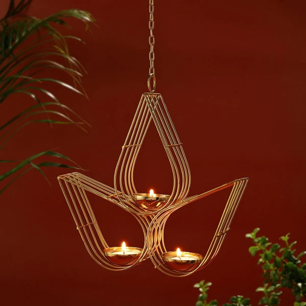 Elegant hanging diyas that brighten up spaces with warmth and love, ideal for entrances or puja rooms