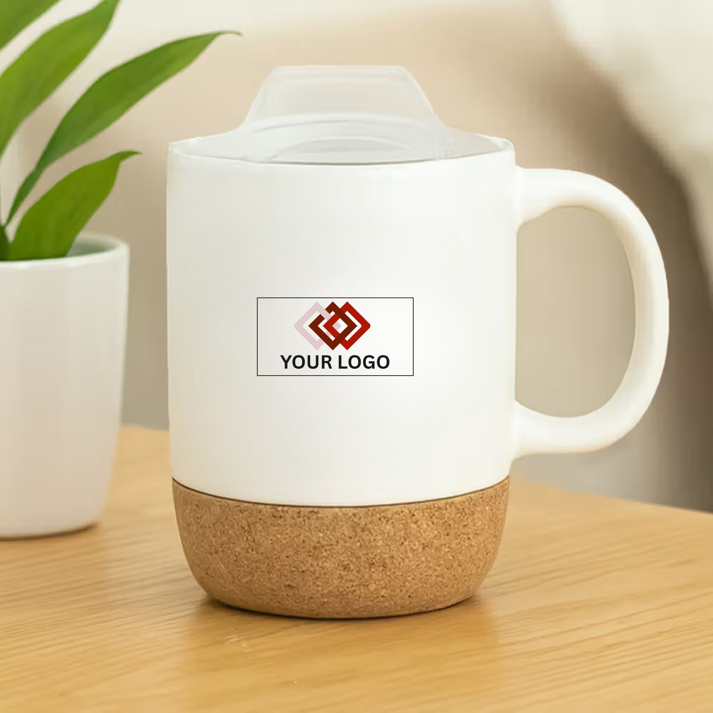 4) White Ceramic Mug With Cork Base 450 ML