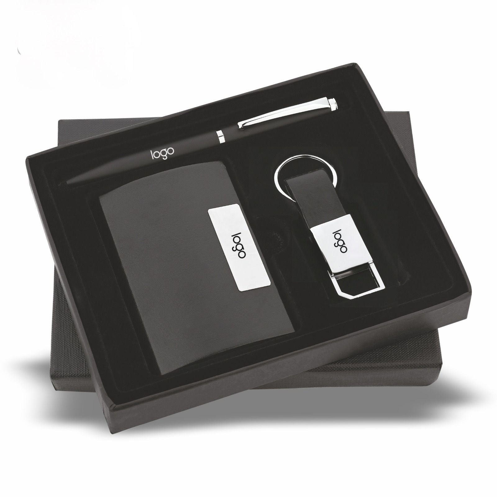 Introducing the Black Pen, Keychain, and Cardholder Employee Kit, featuring a sleek black design. This all-in-one kit offers essential office accessories in a stylish and practical format, making it ideal for professionals, corporate gifts, or employee appreciation. The Black Pen, Keychain, and Cardholder set provides convenience along with a touch of elegance for everyday use.