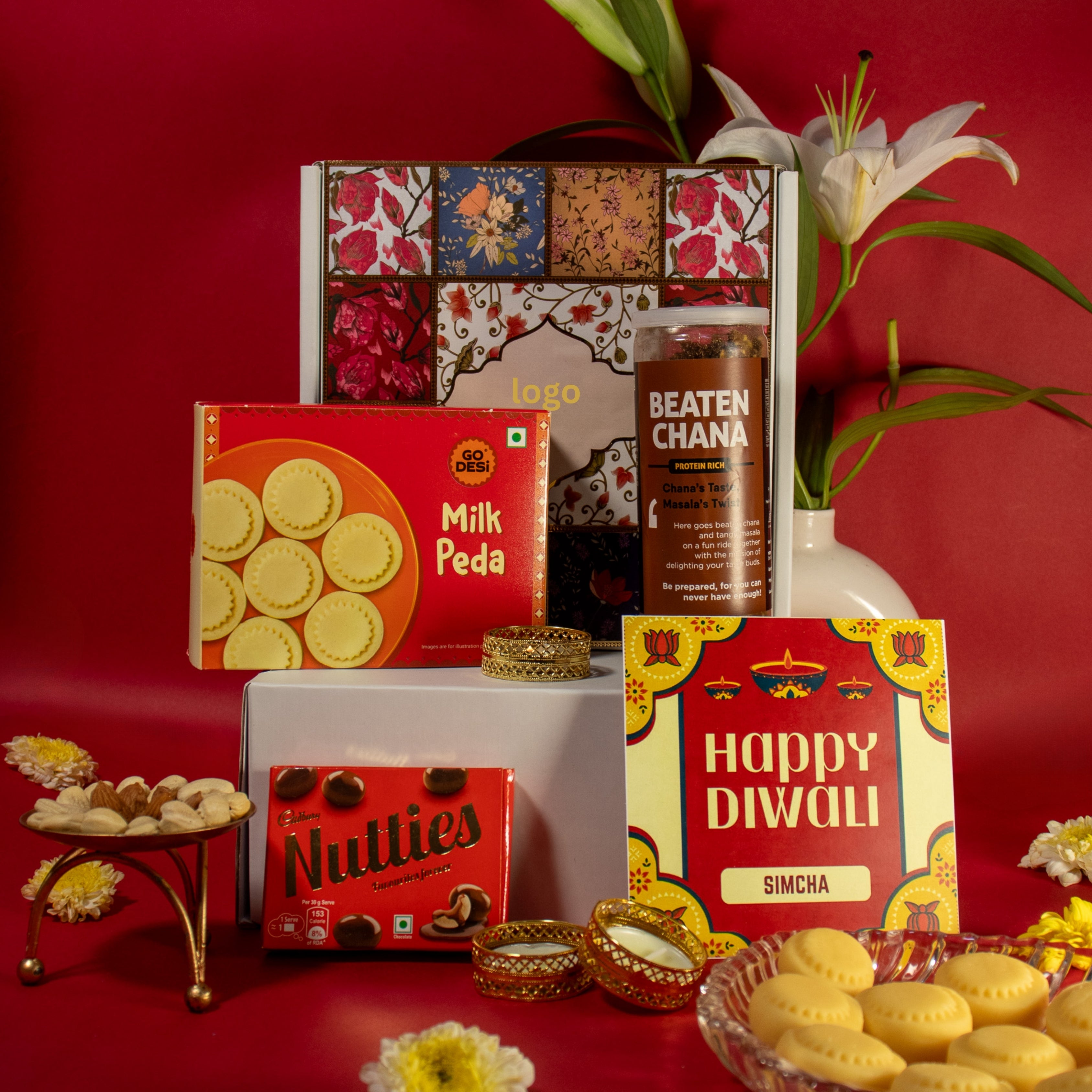 Celebrate the festival of lights with our thoughtfully curated Utsav Diwali Gift Box, designed to bring sweetness, tradition, and festive joy to every celebration. Perfect for corporate gifting, employee hampers, and family presents, this box combines traditional mithai, chocolates, snacks, and festive essentials in one elegant package.